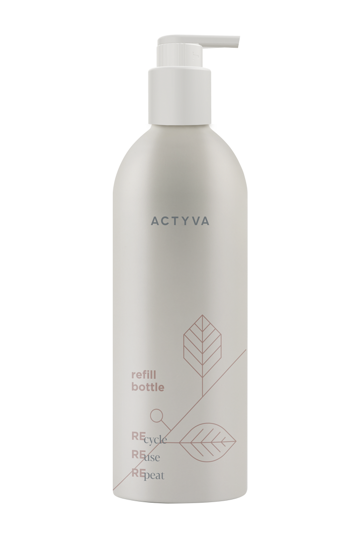 Il flacone viene venduto vuoto e può essere ricaricato con la pouch bag Actyva da 500 ml. Il dosatore, progettato per durare nel tempo, eroga sempre la quantità ottimale di prodotto e permette di riacquistare solo la pouch bag, riducendo significativamente il consumo di plastica.